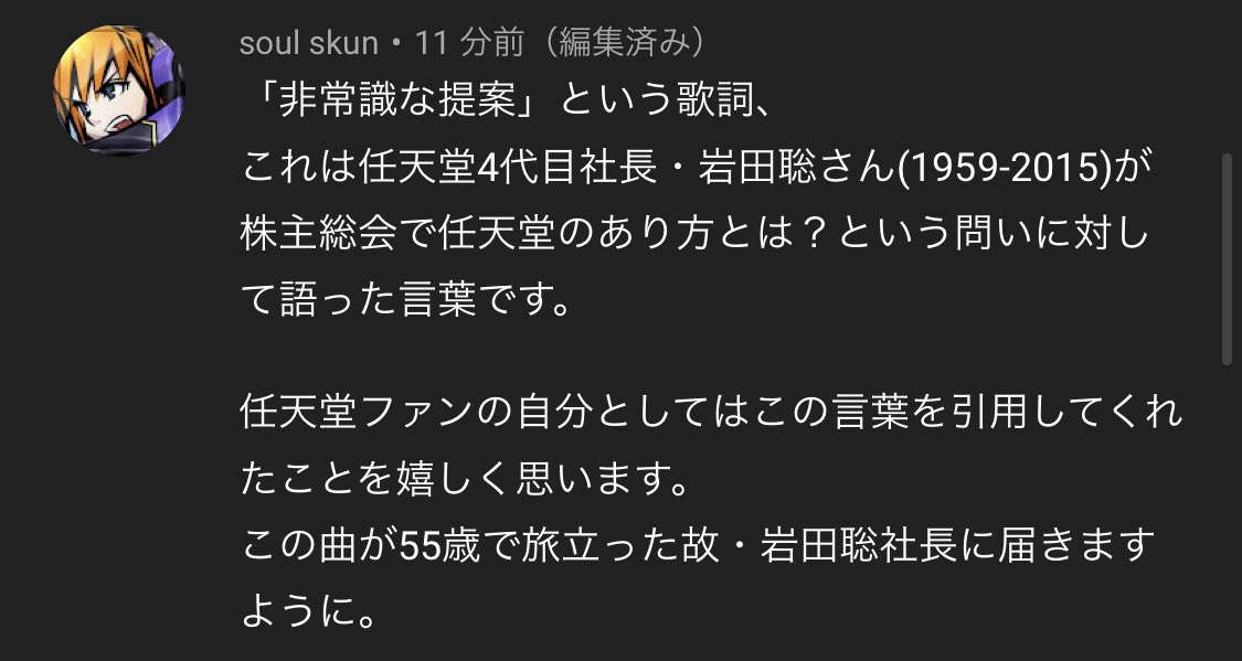 元任天堂社長の岩田聡の名言です。 #岩田聡 #任天堂 #wii #DS #ハル研究所 #名言チャンネル #名言今回は、世界中で愛された名経営者 岩田聡 元任天堂CEOの言葉をご紹介! "On my business card, I am a corporate president In my mind, I am a game developer But in my heartI am a gamer" Satoru Iwata 私は、名刺の上では社長です。 頭の中はゲーム開発者です。 しかし心の中はゲーマーなのです。 解説 訃報が世界中で大きく報じられ、多くのファンにその死を悼まれた岩田聡氏。